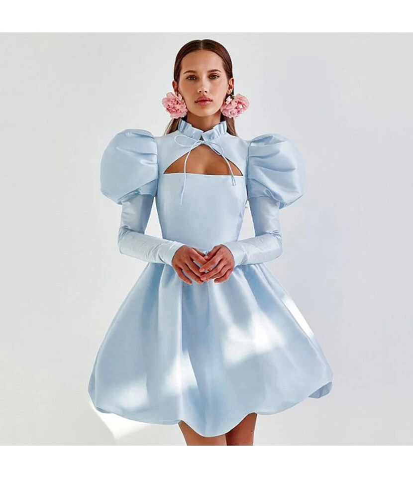 Bandage Puff Sleeve Solid Color Niche Bud Princess Dress Wholesale Dresses SDV463726