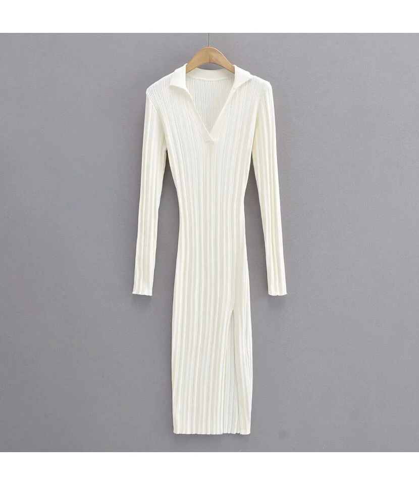Bodycon Slit Full Sleeve Solid Ribbed Midi Dress SD080009