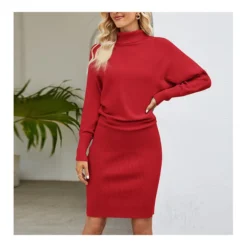 Solid Color Turtleneck Knitted Sweater Dress Wholesale Womens Clothing N3823110200043