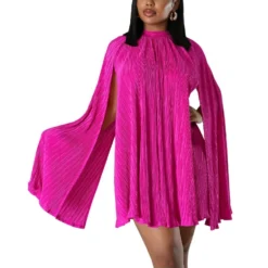 Short Sleeve Casual Solid Color Loose Swing Ruffled Dress Wholesale Dresses SDN539518