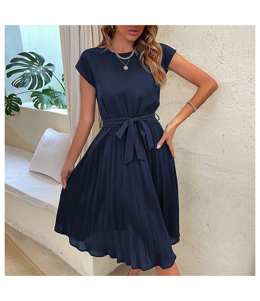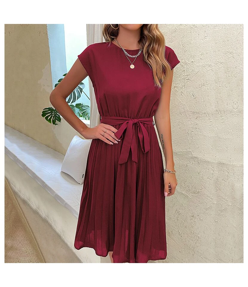 Solid Color Puff Sleeve Ruffles Off Shoulder Tied Rope Vacation Dress Wholesale Dresses SD203764