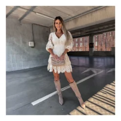 Hollow Half-Sleeved Irregular Lace V-Neck Layered Dress Wholesale Dresses N4601423032800161