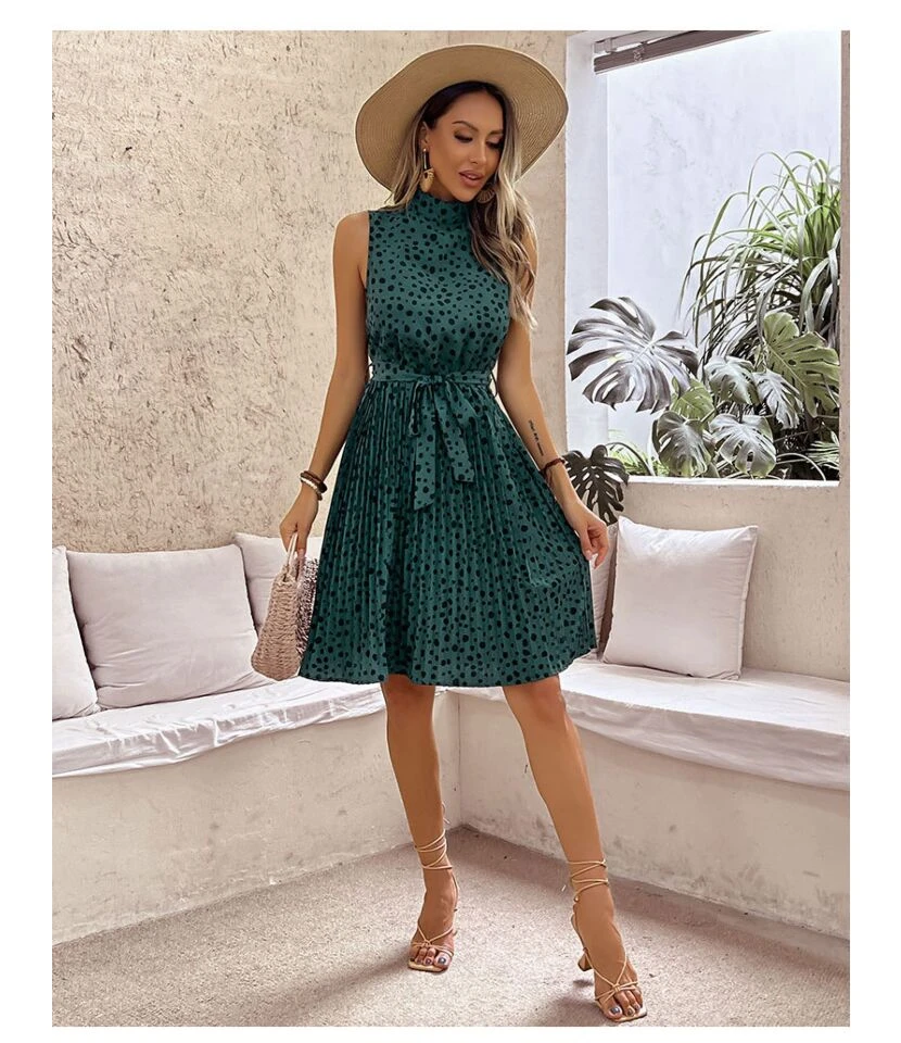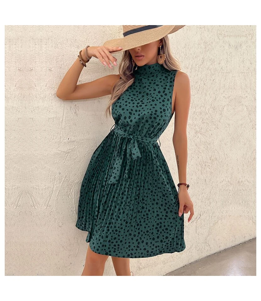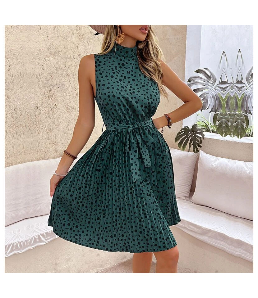 Casual Leopard Tank Dress Lace-Up Sleeveless Ruched Wholesale Dresses SDN561292