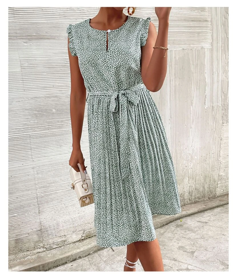 Fashion Long Sleeve Suit Collar Lace-Up Waist Pressed Pleated Dress Wholesale Dresses N5323032800171