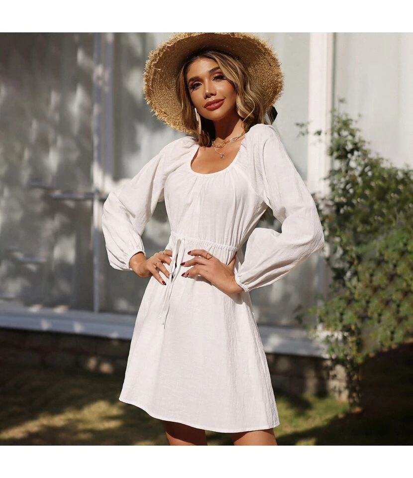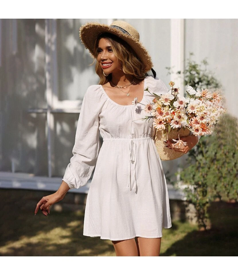 Be the first to review “Casual Square Neck A-Line Dress Lace-Up Long Sleeve Solid Color Wholesale Dresses SDN561544” Cancel reply