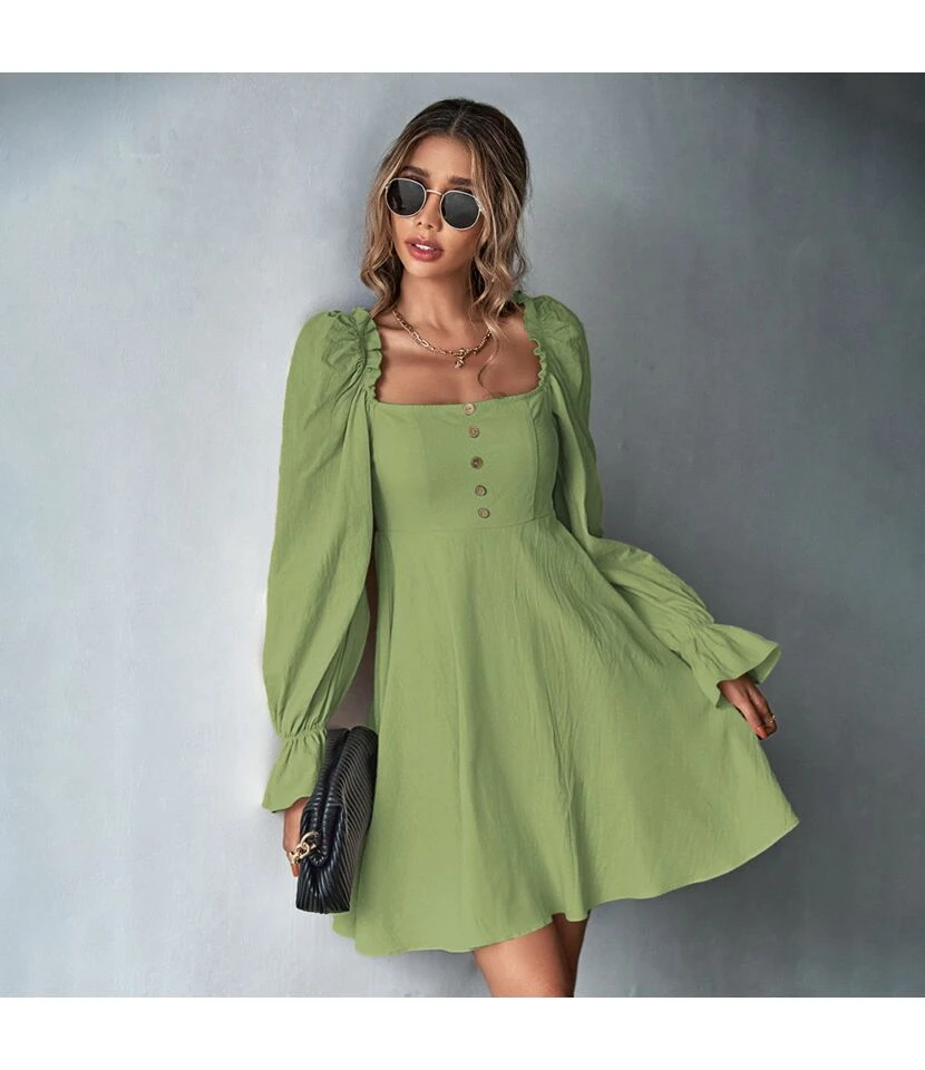 Casual Square Neck Bubble Long Sleeve A-Line Mini Dress Wholesale Dresses SDN562884