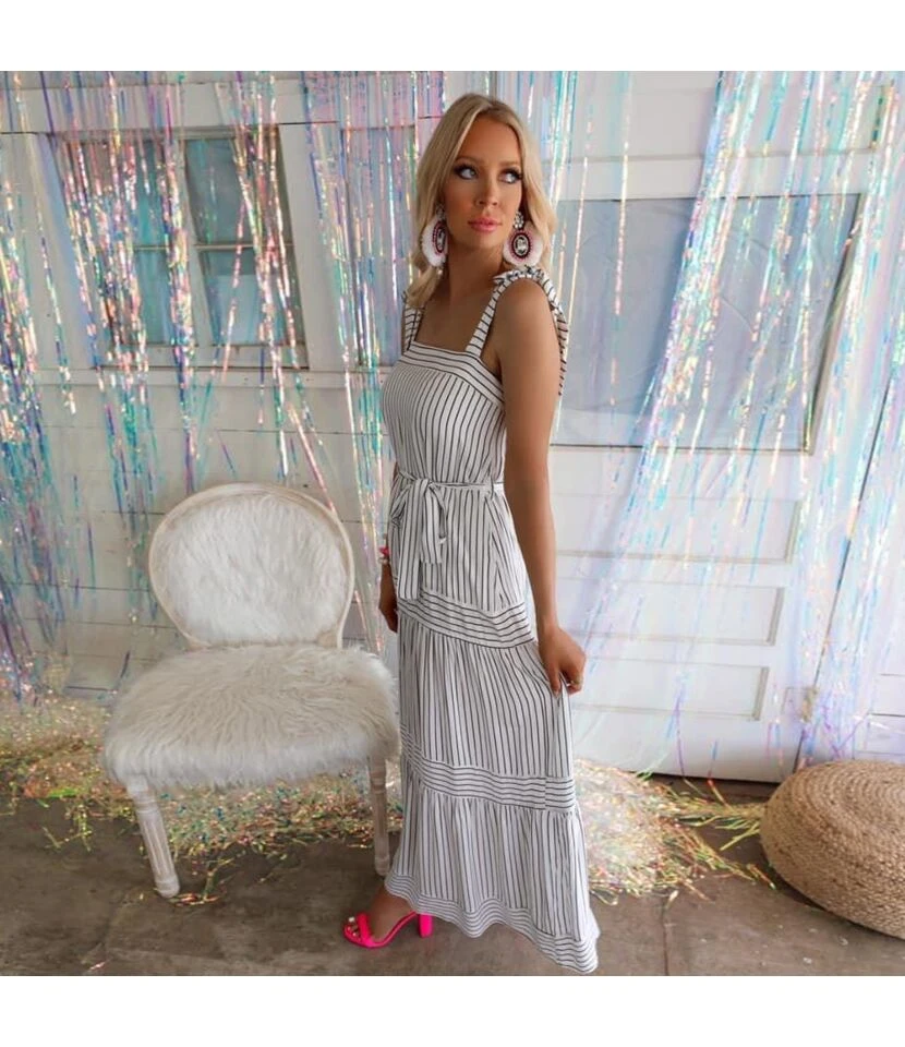 Casual Striped Sling Dress Backless Lace-Up Wholesale Dresses SDN561306