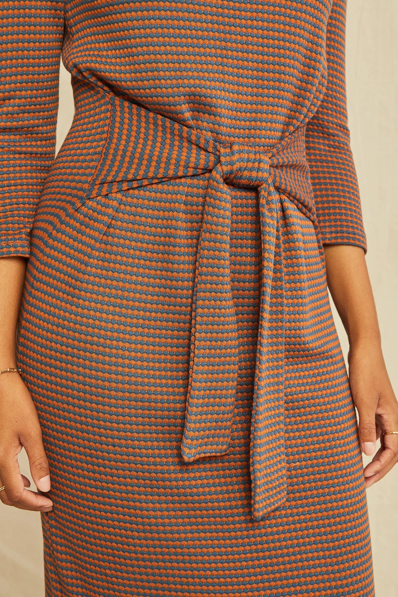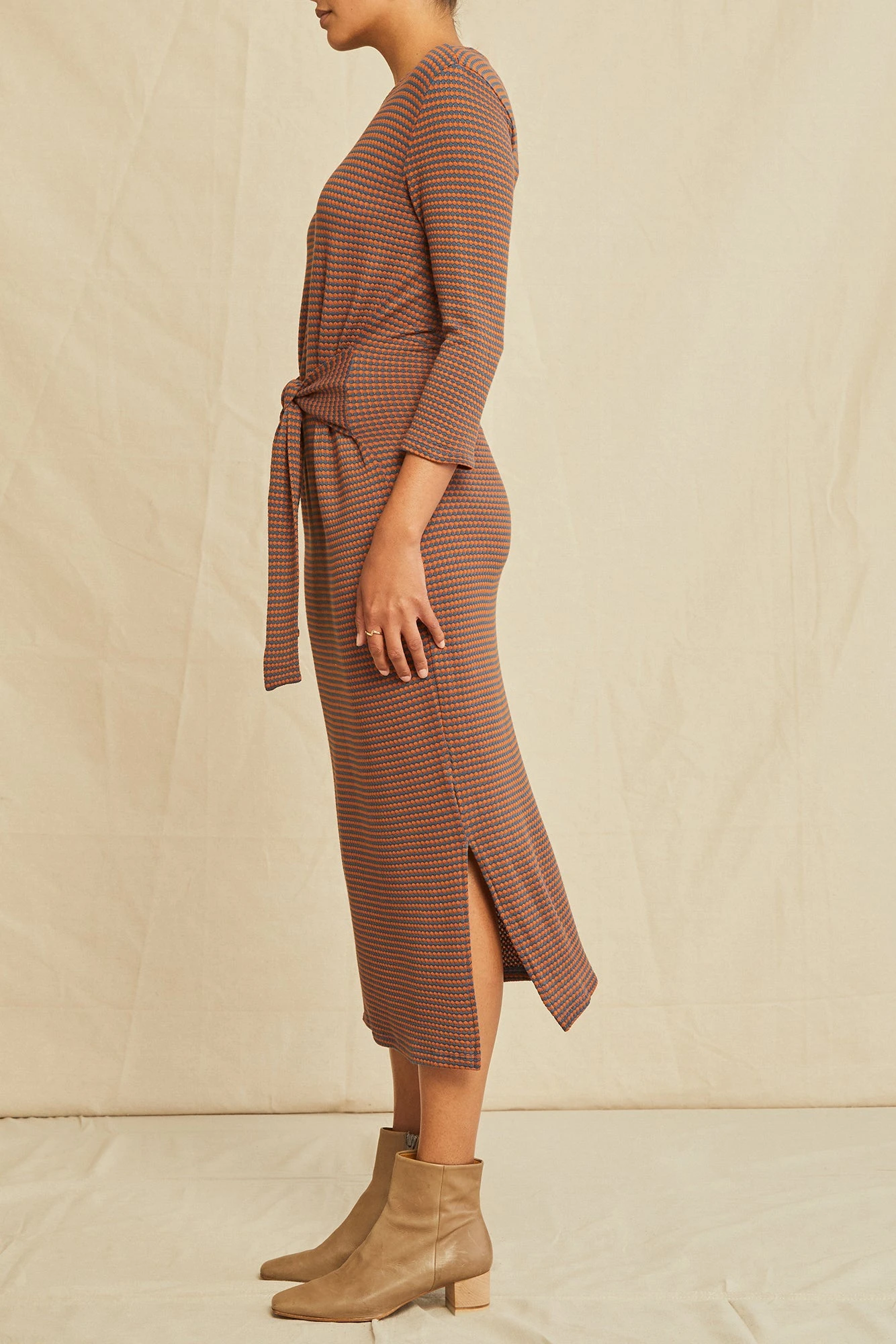Colombe Scallop Knit Dress – Azure Umber Stripe
