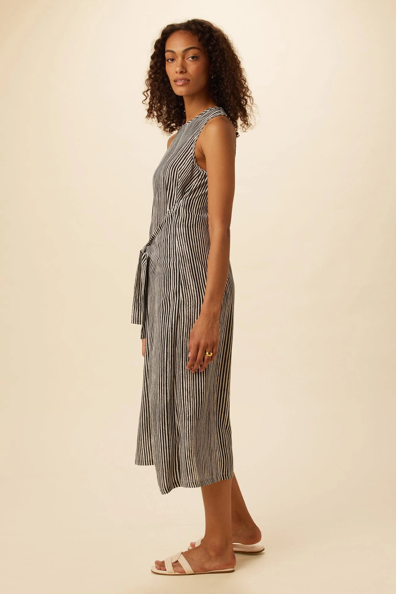 Made from our soft and sustainable Washable Silk, this sleeveless, midi length dress features an adjustable tie waist and a loop and button closure.