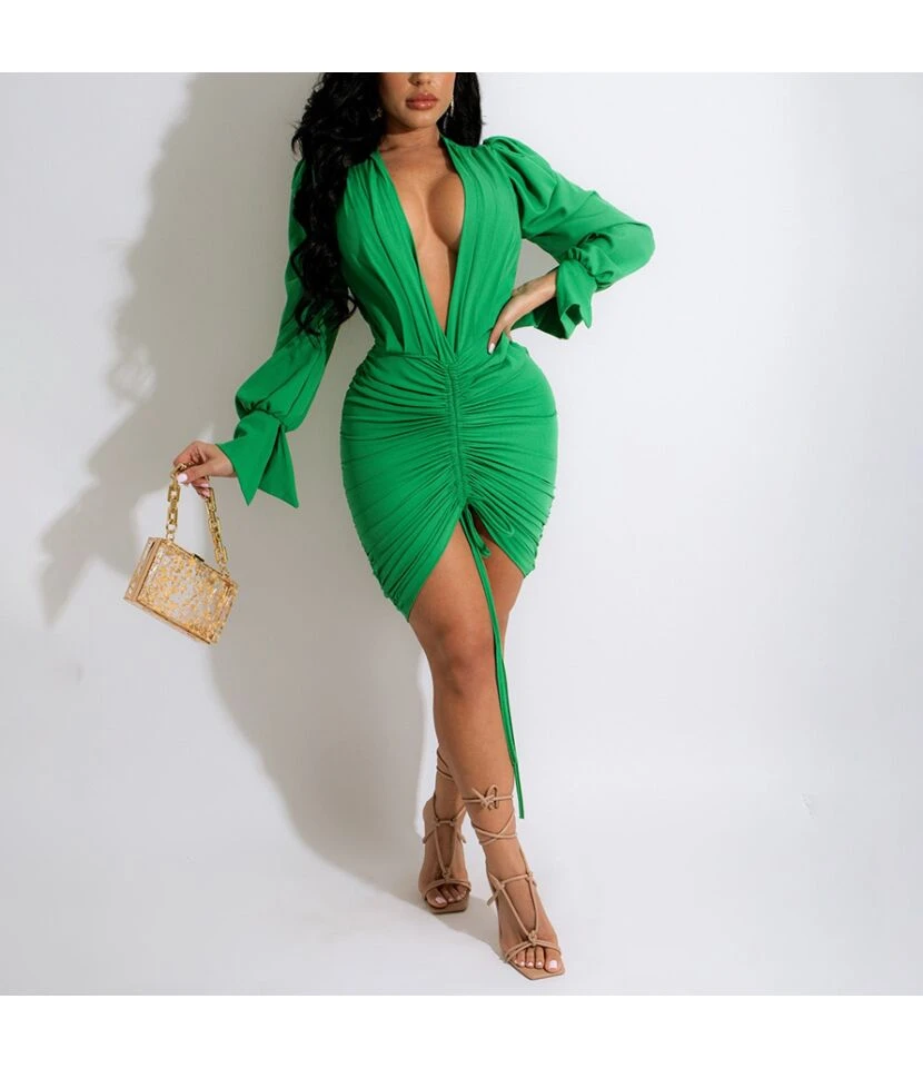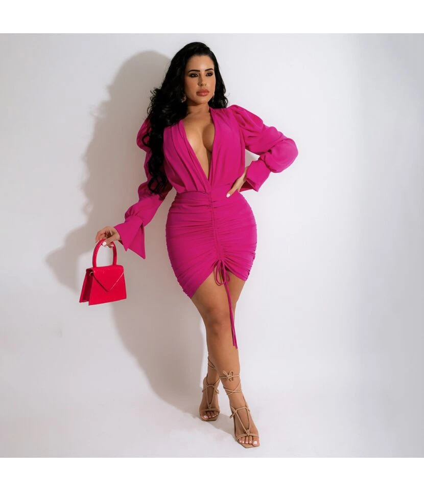 Casual V-Neck Lapel Mini Dress Single-Breasted Long Sleeve Bodycon Wholesale Dresses SDN562274