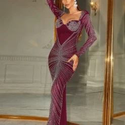 Deep V-neck Strawberry Pattern Lace-up Sequin Mesh Dress