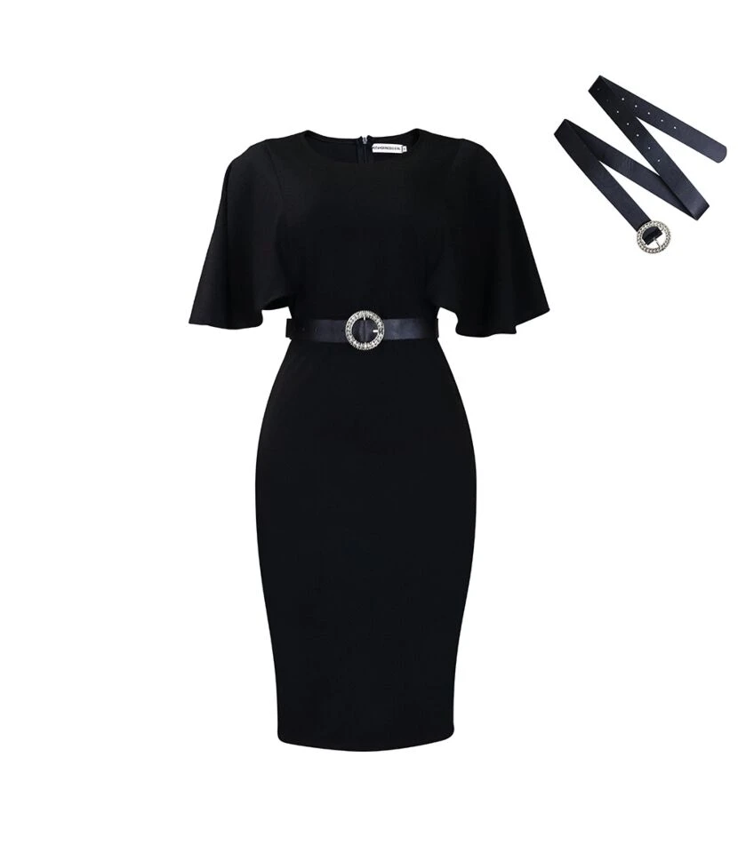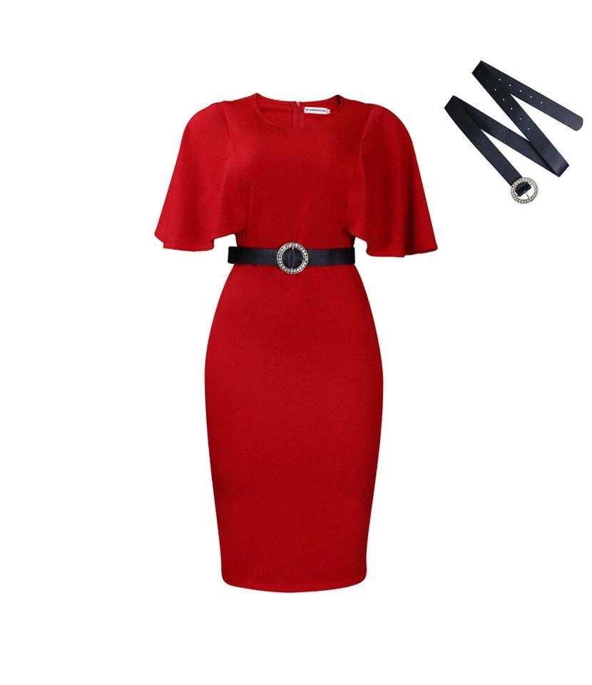 Sexy Solid Color Cape Style Metallic Waistband Hip Wrap Dress Wholesale Dresses N5923080800082
