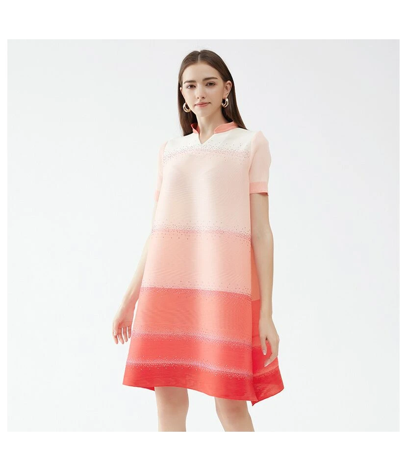 Temperament Round Neck Strapless Short-Sleeved Pleated Waist Dress Wholesale Dresses N5323032800183