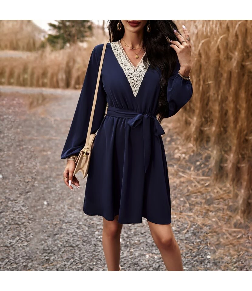 Casual French Vintage Print V-Neck Design Chiffon Dress Wholesale Dresses N5323032300036