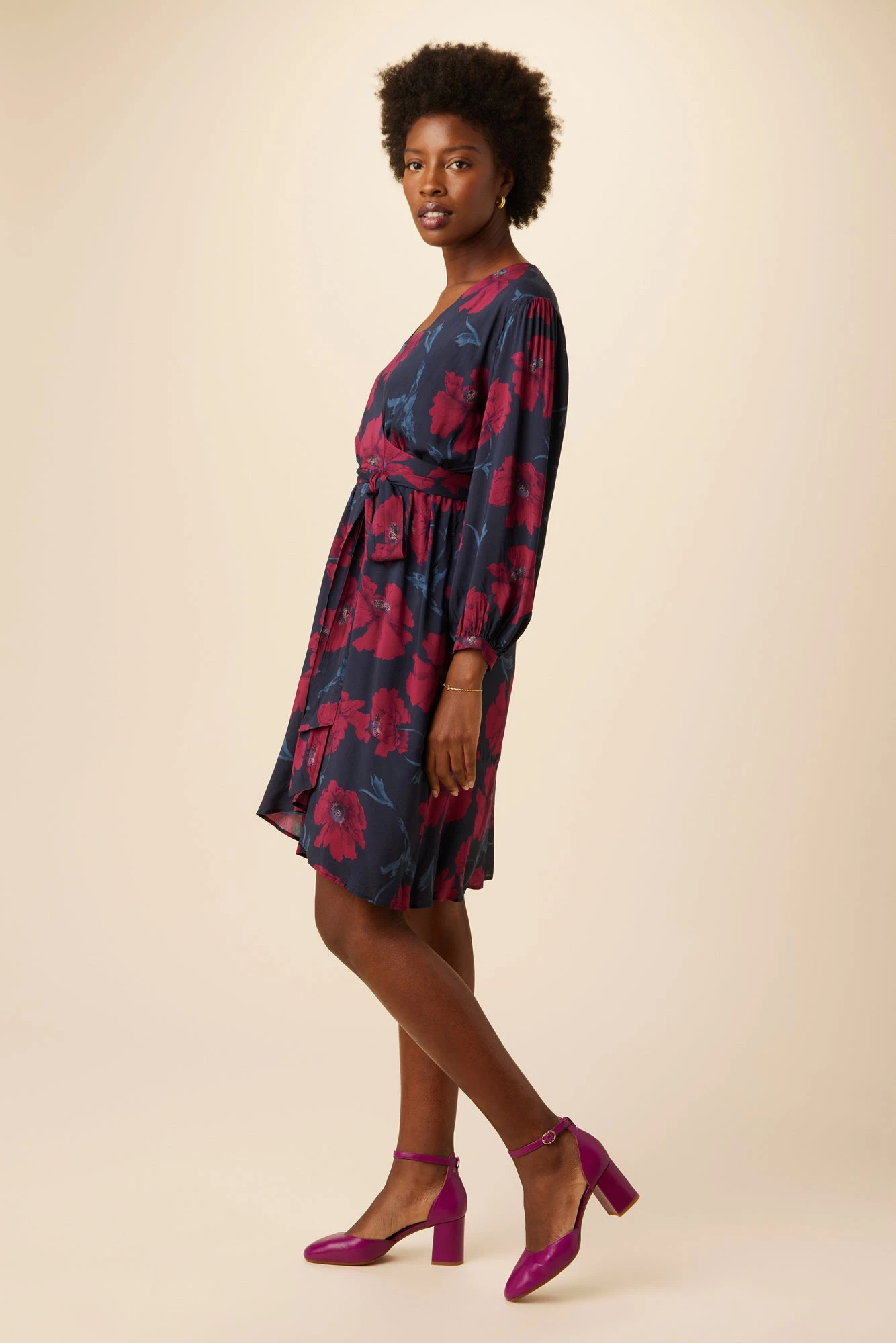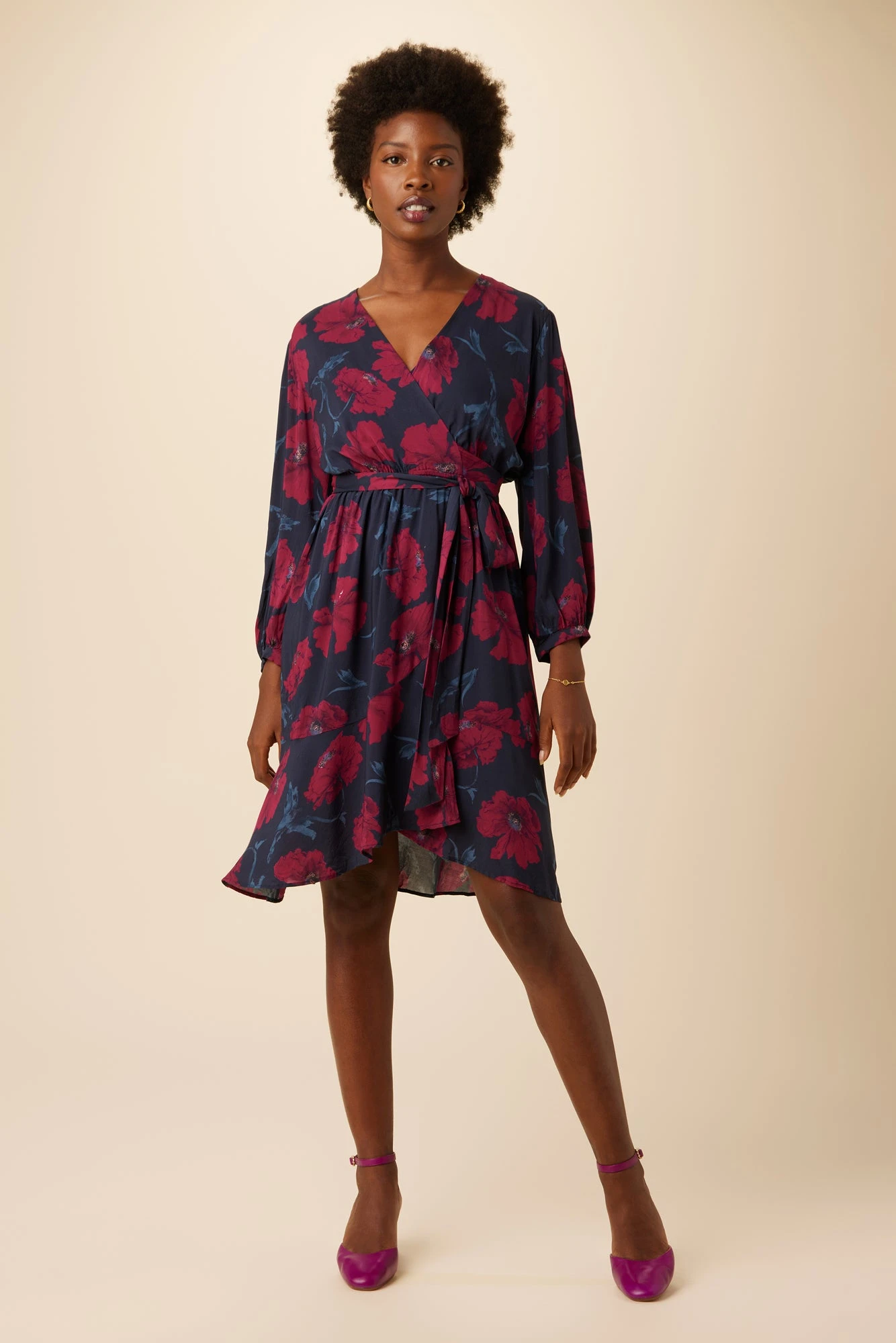 Wrap dress with adjustable tie waist, flounce hem and slip lining, made from sustainable ECOVEROâ„¢ Viscose fabric. This flowy dress is destined to become your new fall staple.