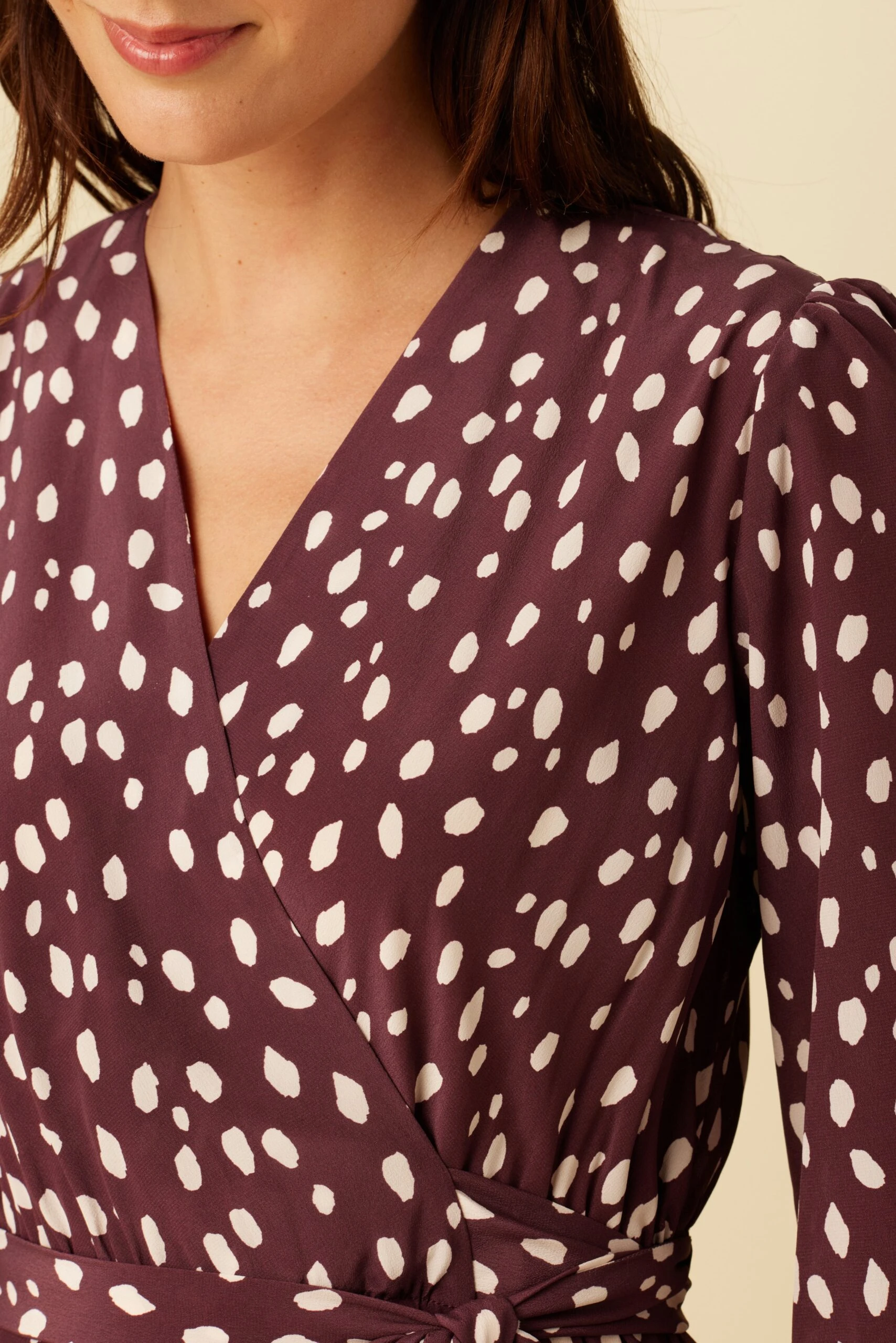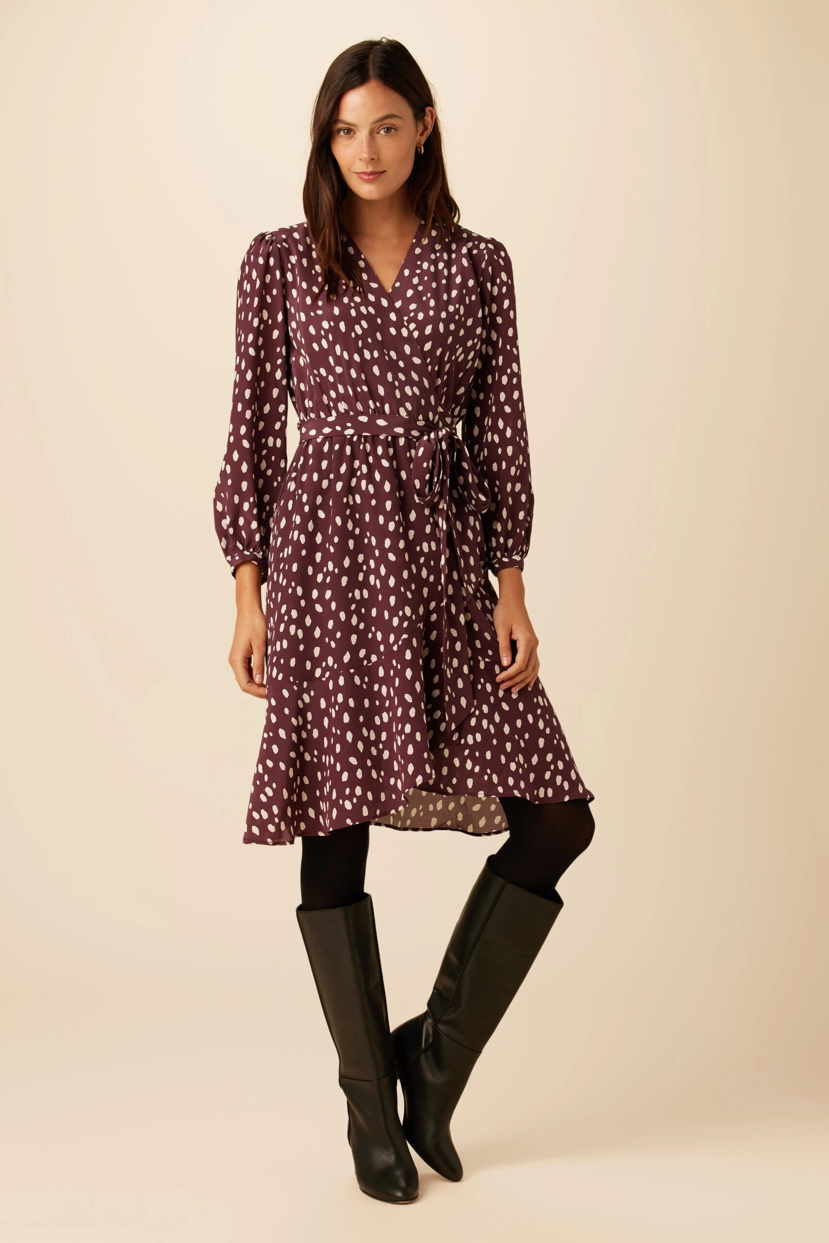 Long sleeve wrap dress with waist tie and ruffle detailing at the hem. Made from our soft and airy Washable Silk, this sophisticated silhouette will take you effortlessly from your desk to dinner.