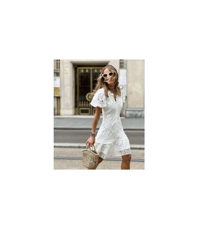 Fashion Lace Sleeveless Ruffle One-Piece Collar Dress Wholesale Dresses V5923050600014
