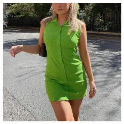 Be the first to review “Fashion Lapel Sleeveless Shirtdress Single-Breasted Knit Bodycon Dress Sexy Wholesale Jersey Dresses SDN532473” Cancel reply