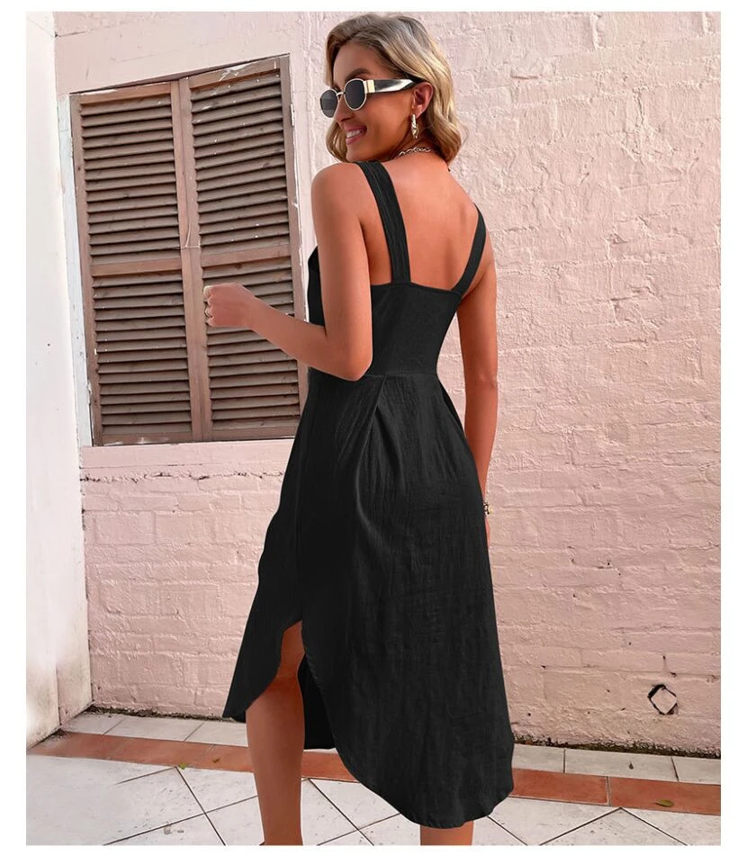 Elegant Flower Petal Sleeve Solid Color Square Neck Long Dress Wholesale Dresses V5923041200032