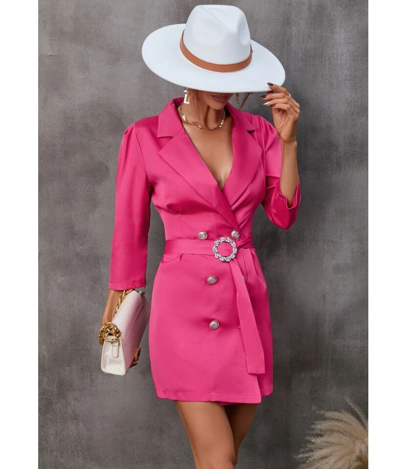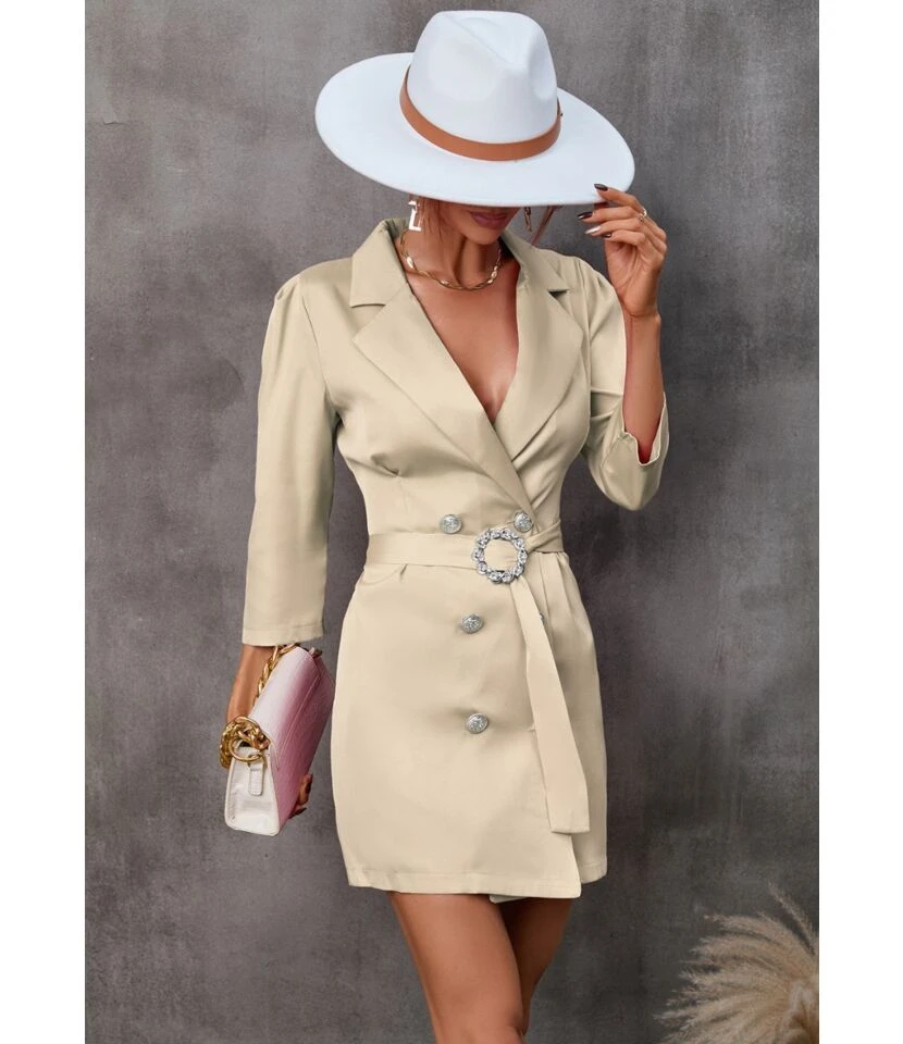 Button-Down Short-Sleeve Belt Commuter Loose Suit Dress Wholesale Dresses N4623070600032