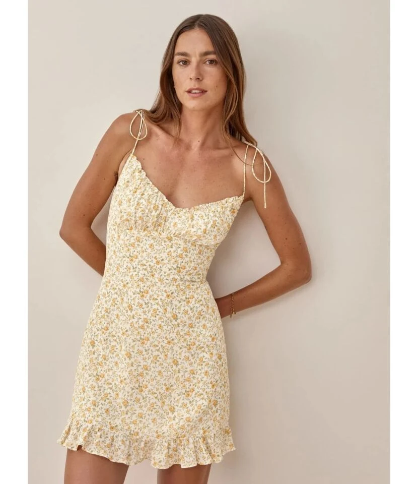 Floral Print Resort Style Sundresses V-Neck Chiffon Backless Lace-Up Ruffled Dress Chic Wholesale Dresses SDN580382
