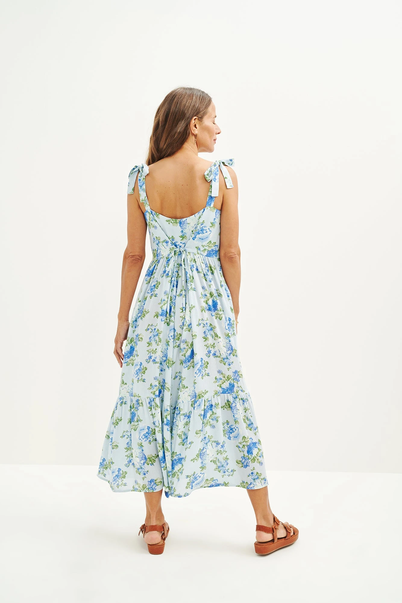 This dreamy ‘wear everywhere’ occasion dress is made from upcycled rayon as part of our commitment to repurpose old materials and reduce waste.