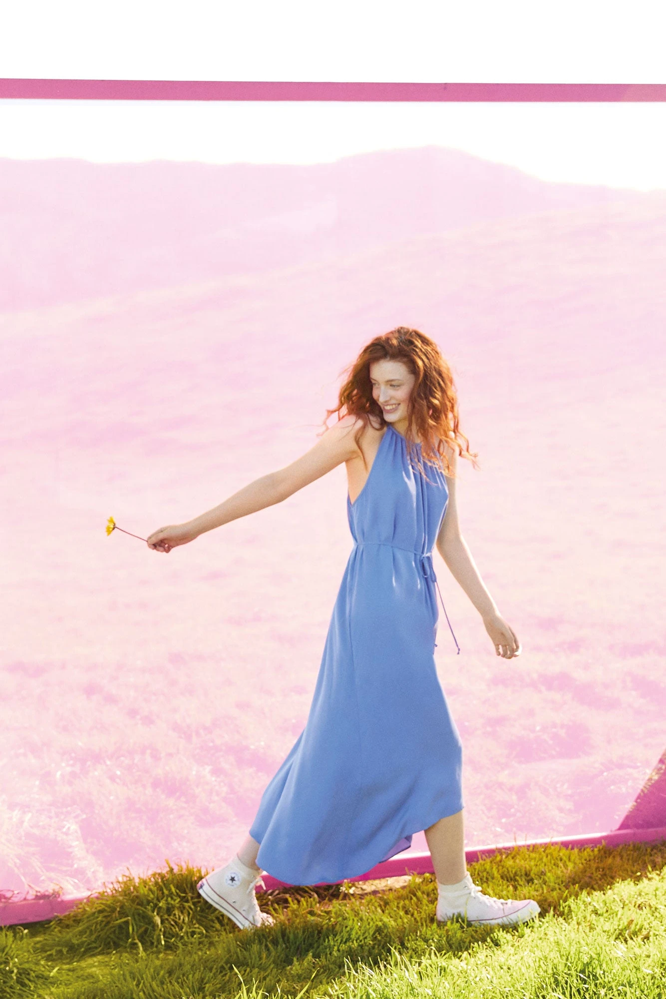 Halter style maxi dress with a tie at the back neck, side pockets, and a removable waist tie so you can wear relaxed or fitted. Made in our softest plant-based silk alternative, Cottonseed Cupro.
