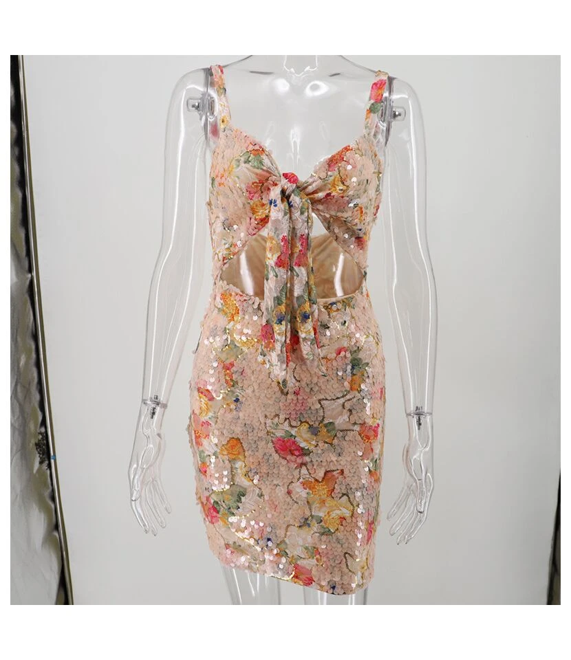 Be the first to review “Knot-front Flower Trim Sequins Dress” Cancel reply