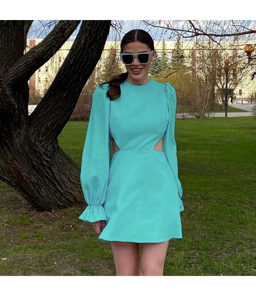 Casual V-Neck Lapel Mini Dress Single-Breasted Long Sleeve Bodycon Wholesale Dresses SDN562274