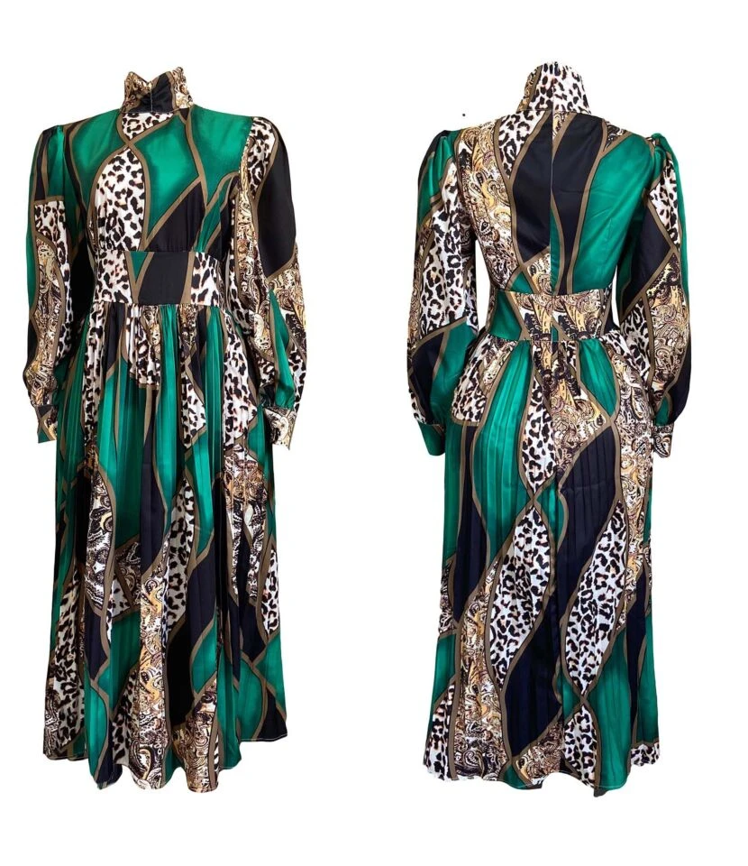 Casual French Vintage Print V-Neck Design Chiffon Dress Wholesale Dresses N5323032300036