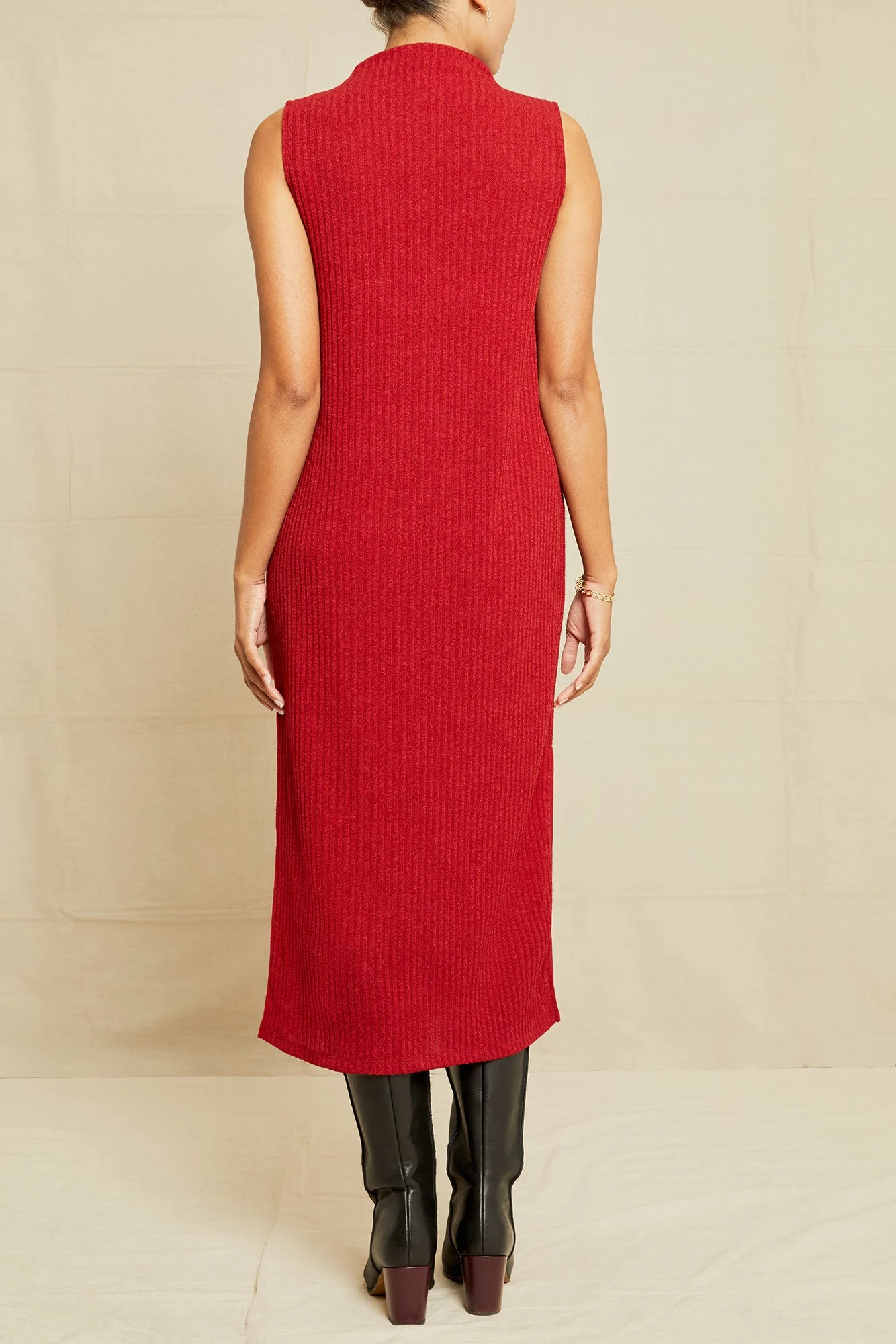 Mock neck, sleeveless relaxed fit midi dress with side slits. Made in our coziest fleece, a blend of modal and organic cotton.