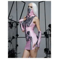 Dark Punk Tie Square Neck Mesh See-Through Short-Sleeved Dress Wholesale Dresses N4623071300007