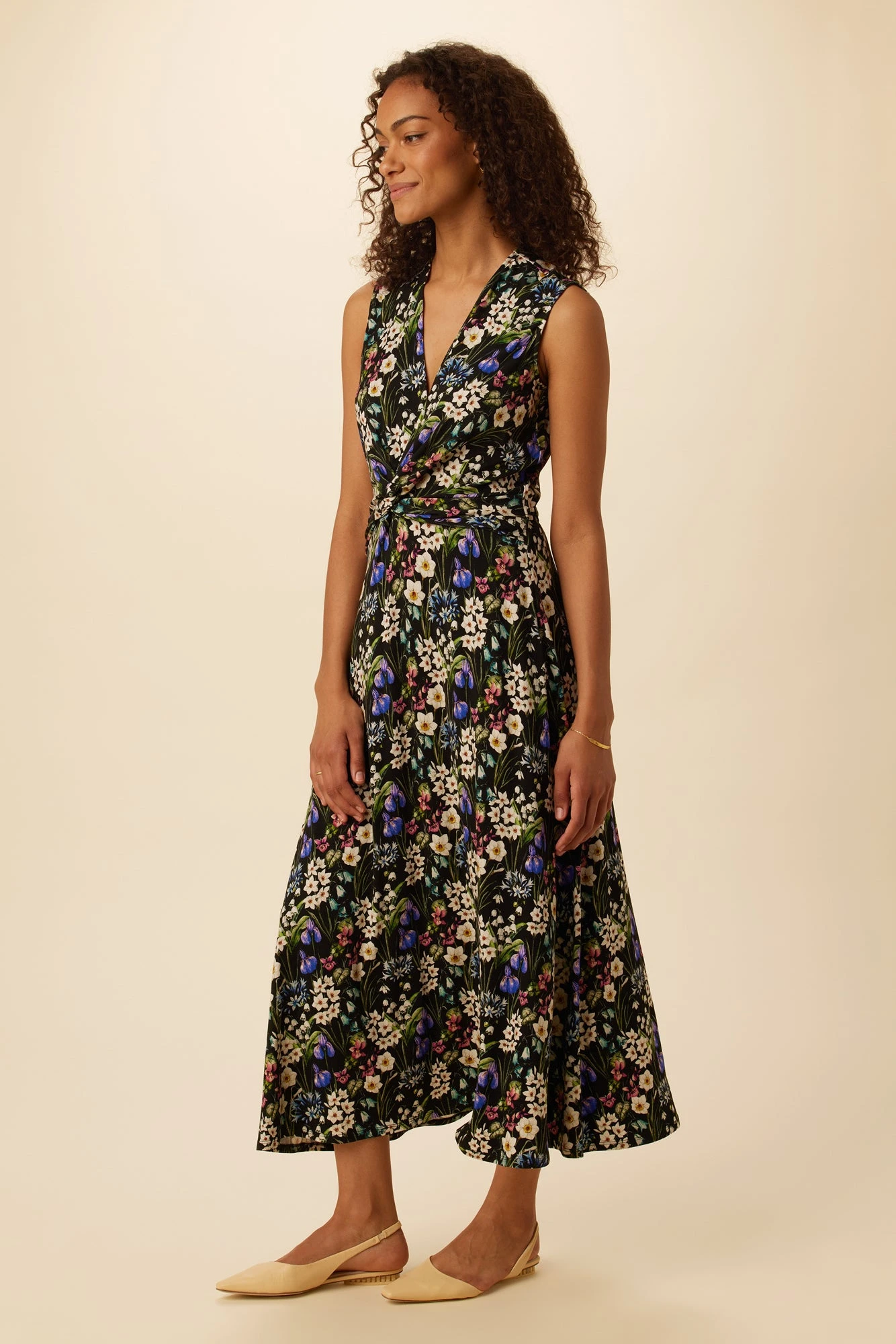 V-neck midi dress featuring side pockets and twist front detailing at the waist, comes with a slip lining. Made from a mix of Viscose & Spandex for stretch, this easy silhouette is as comfortable as it is flattering.