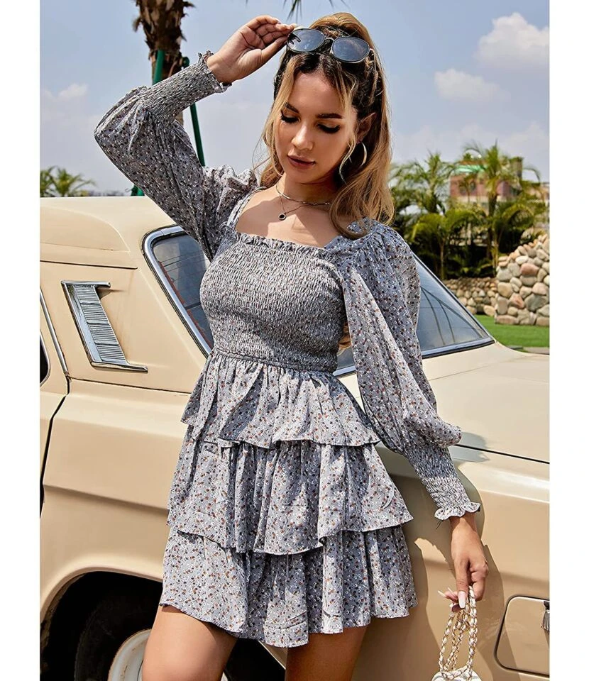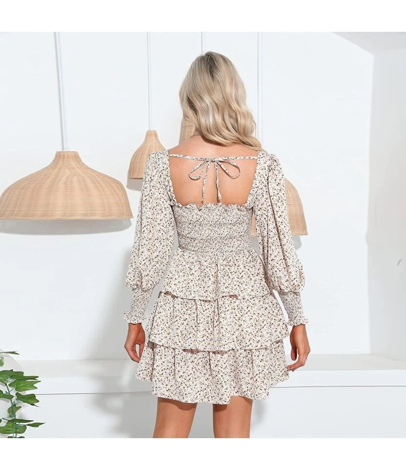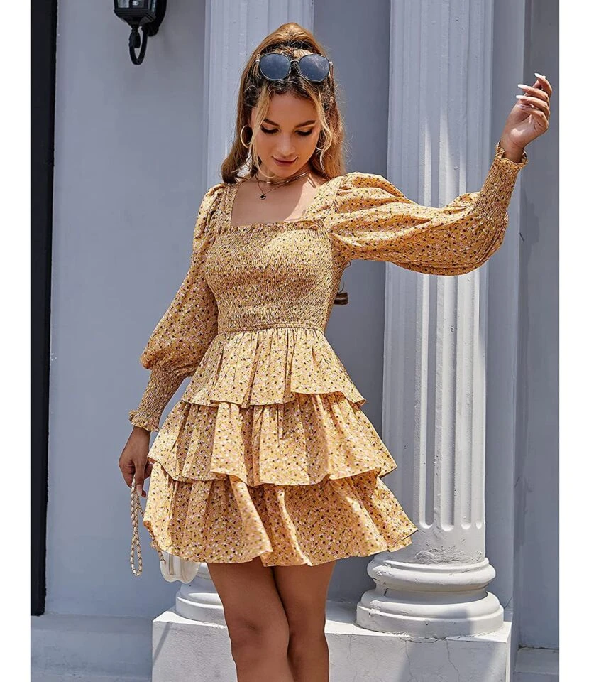 Plain & Print Long Lantern Sleeve Square Neck Chiffon Layered Skirts Design Cake Dress Resort Wholesale Dresses SDN532456