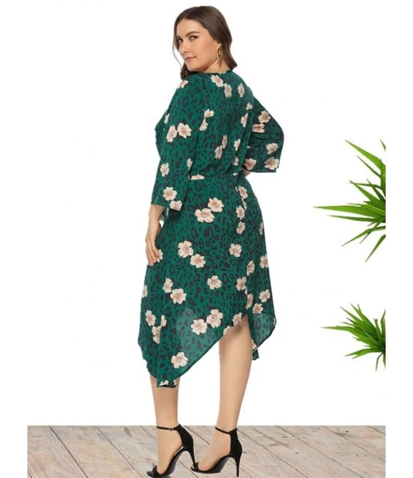 Plus Size Lace Floral Print Lace-up Waist Swing Dress 210722215