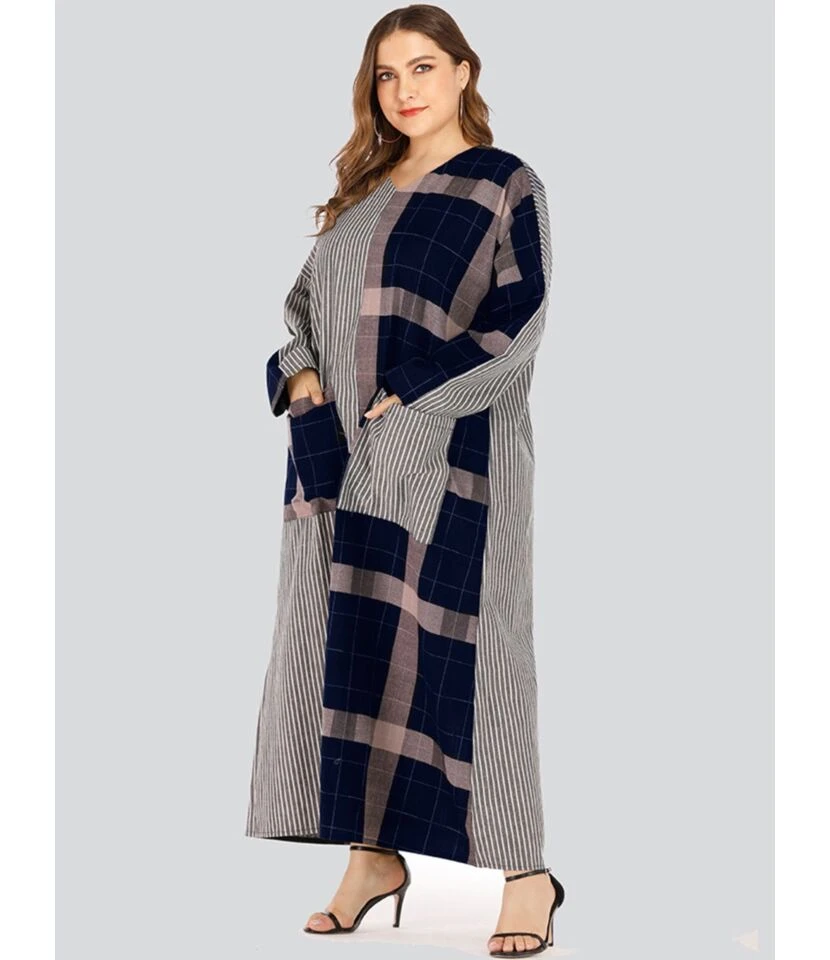 Be the first to review “Plus Size V Neck Gingham Striped Stitching Maxi Dress 210621652” Cancel reply