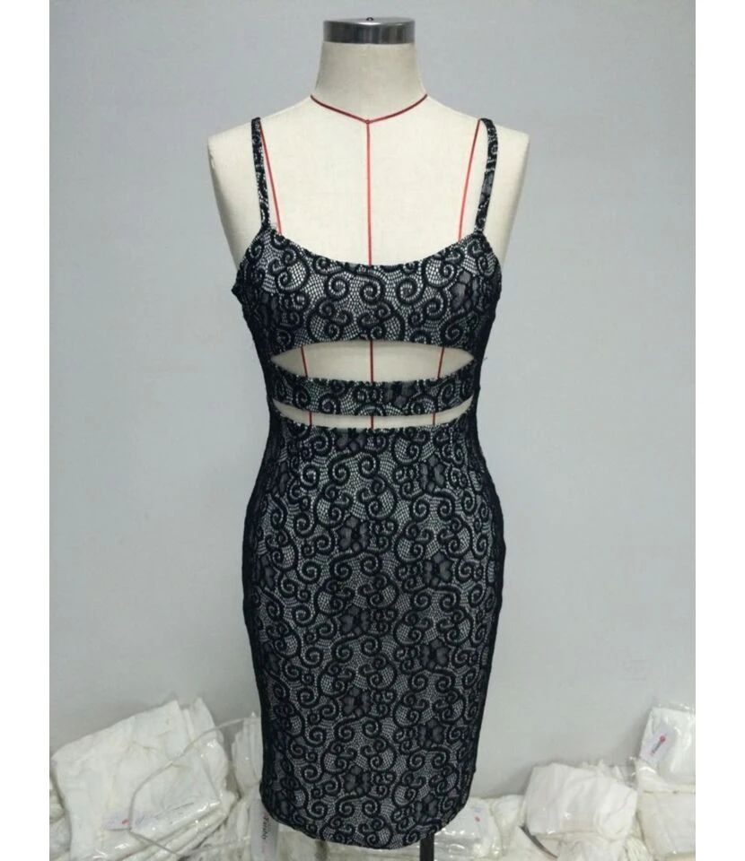 Women’s sexy Hollow Embroidery Sling Bodycon Dress