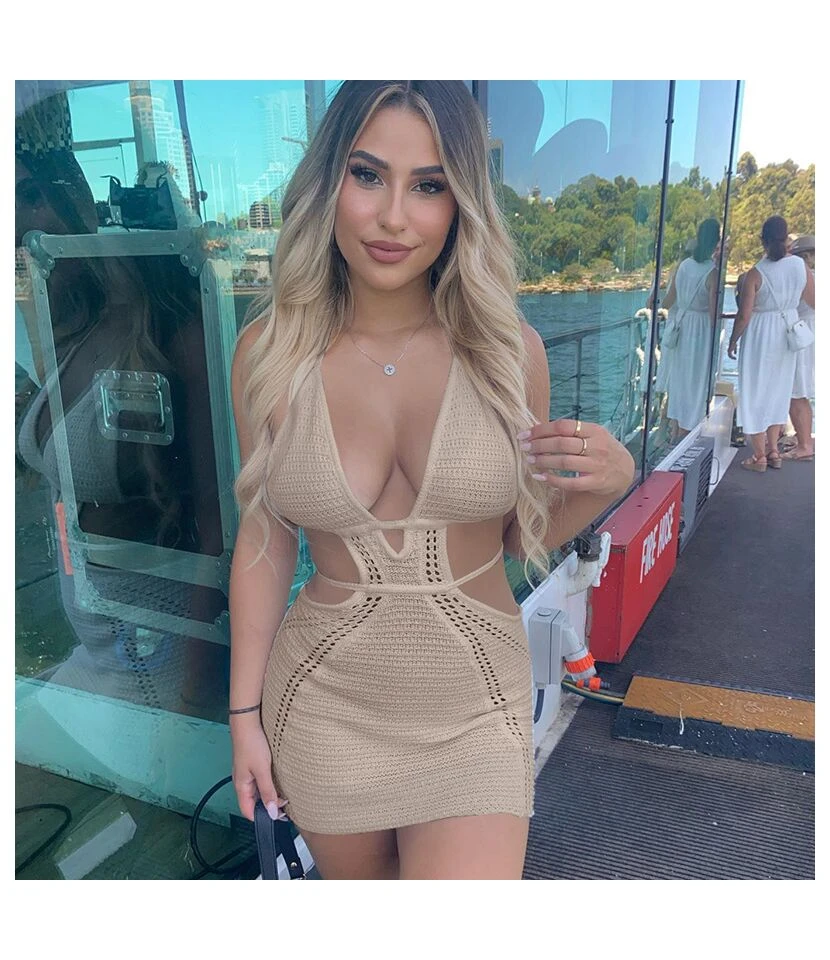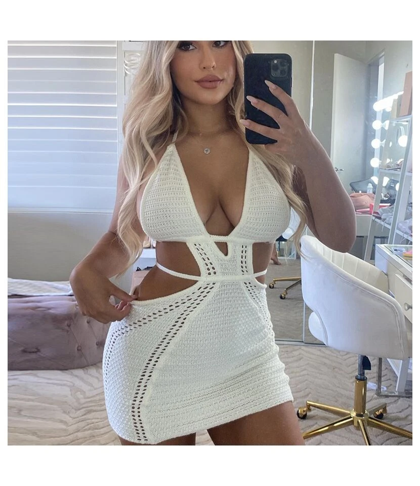 Sexy Tie-Rope Side Slit Solid Color Halterneck Knitted Midi Dress Bodycon Wholesale Dresses SD204428
