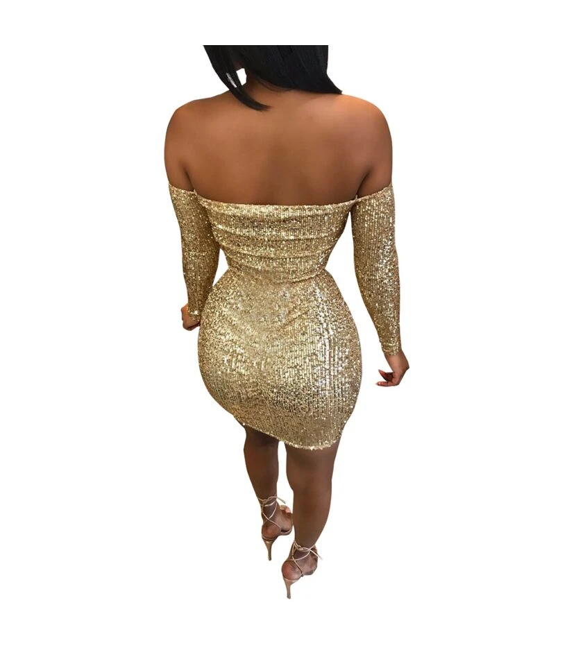 Sexy Off Shoulder Long Sleeve Crop Tops & Mini Dress Solid Color Sequins Wholesale Womens 2 Piece Sets SON562802