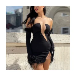 Sexy Halter-Neck Hollow Strap Tight Long Sleeve Bodycon Dress Wholesale Dresses SDN538004