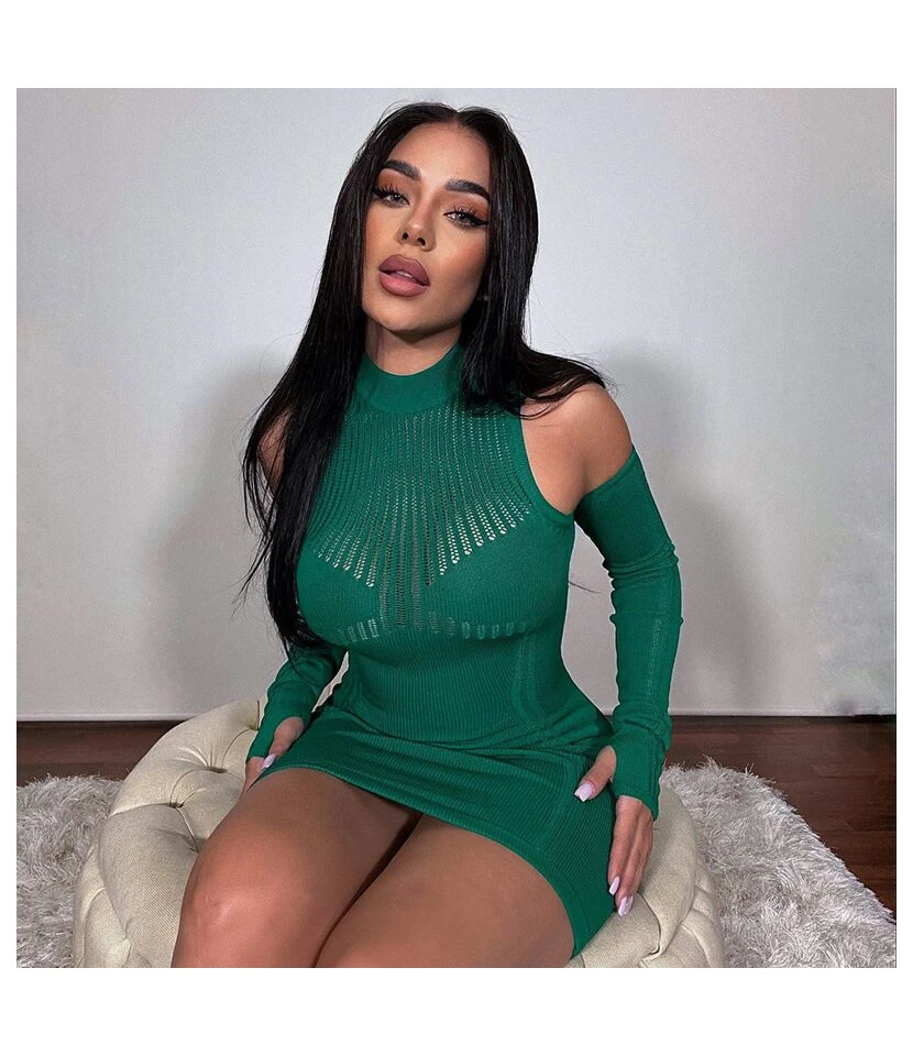 Casual V-Neck Lapel Mini Dress Single-Breasted Long Sleeve Bodycon Wholesale Dresses SDN562274