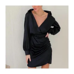 Be the first to review “Sexy Satin Deep V Neck Dress Solid Color Long Sleeve A-Line Wholesale Dresses SDN560922” Cancel reply