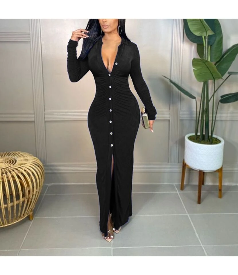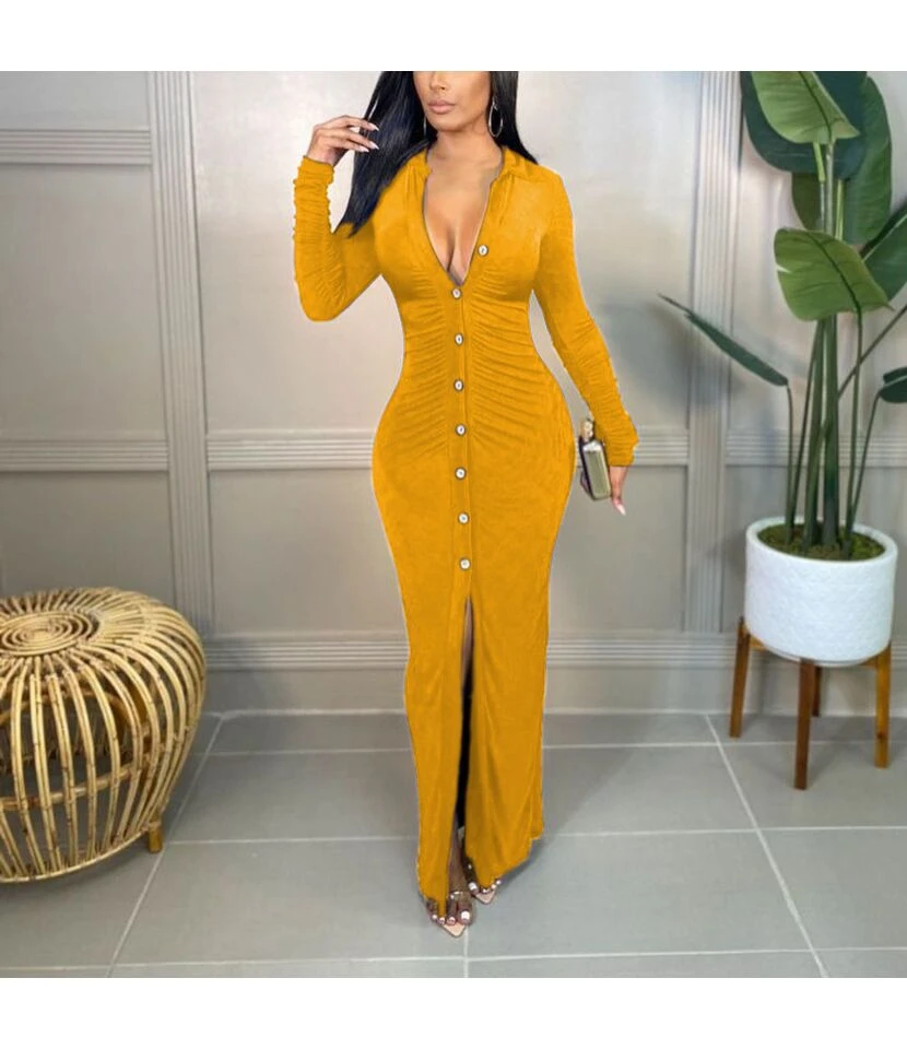 Fashion Solid Color Pleated High Waisted Hip Pencil Dress Wholesale Dresses N5923080800081