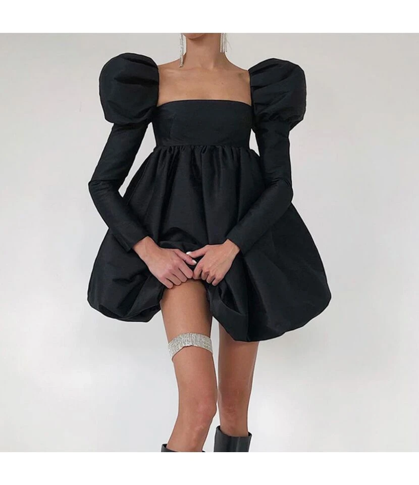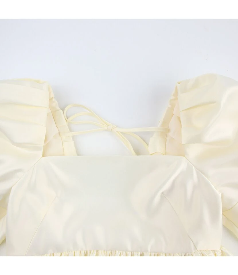 Sexy Square Neck Satin Dress Puff Sleeve Solid Color A-Line Wholesale Dresses SDN560919