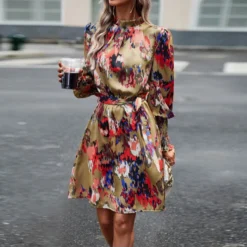 Lantern Sleeve Pleated Print Temperament Elegant Long-Sleeved Dress Wholesale Dresses N4623062500011