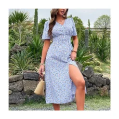 Be the first to review “Sexy V Neck Floral Dress Short Sleeve Slit Shirt Wholesale Dresses SDN561308” Cancel reply