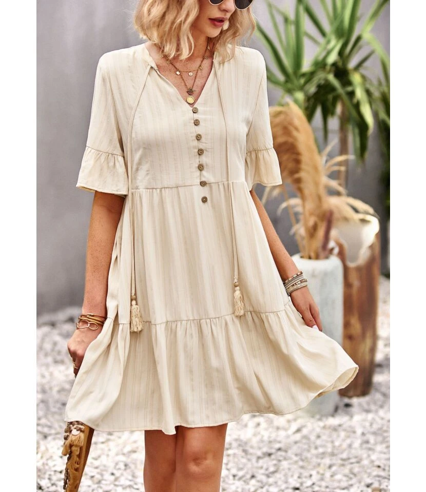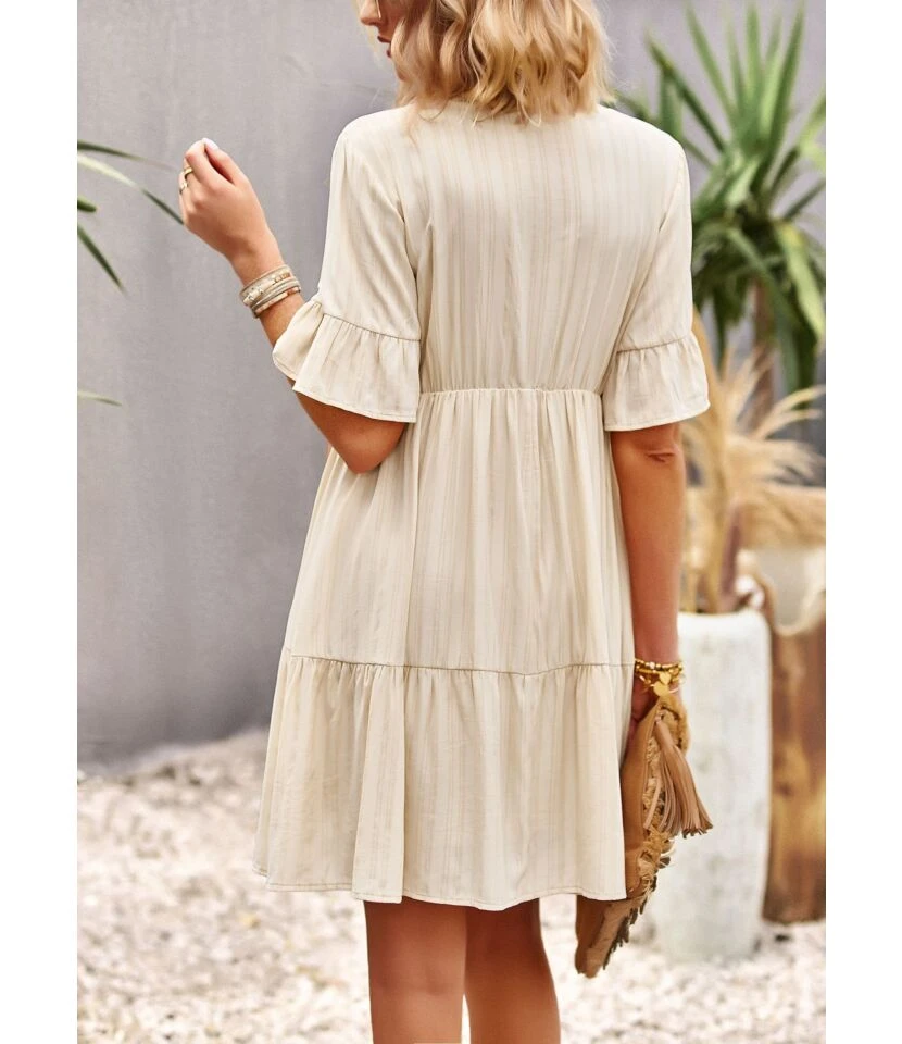 Sexy Deep V Ruffles Sleeve Dress Solid Color Lace-Up Backless Wholesale Dresses SDN560229