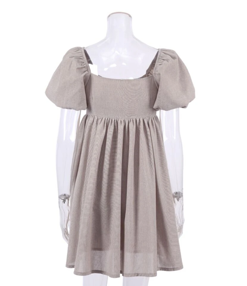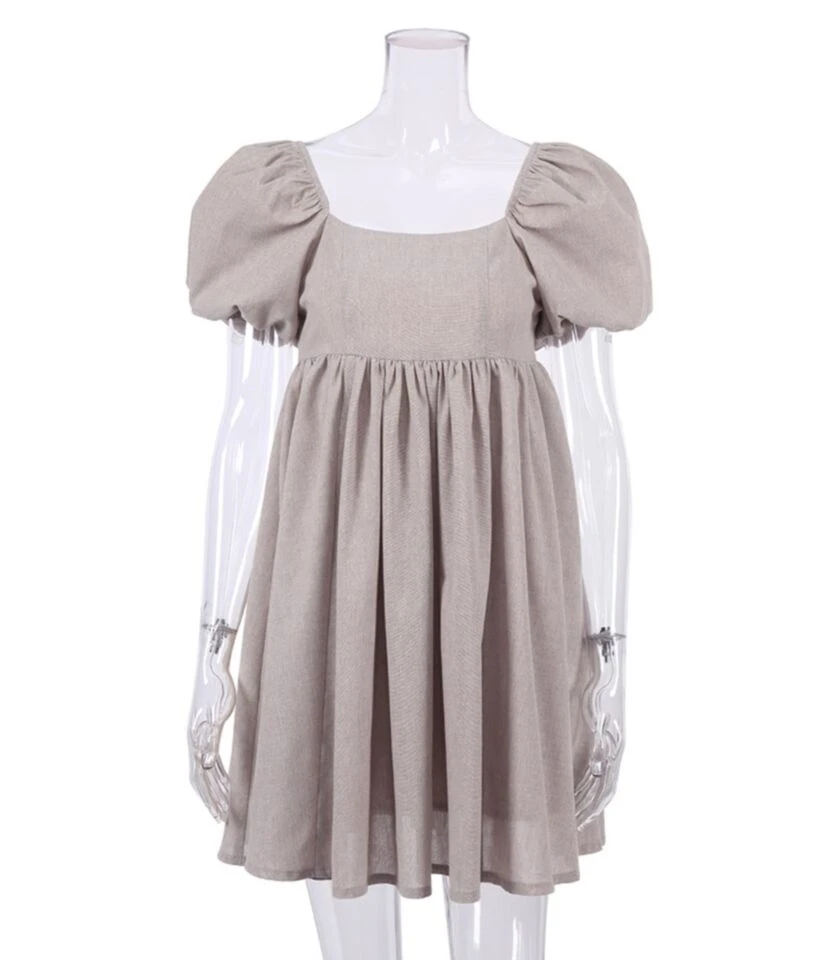 Square collar Puffed Sleeves Plain Collar Linen A-Line dress