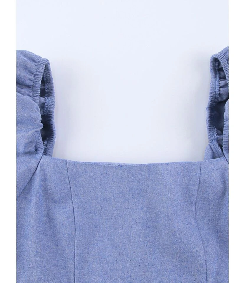 A-line dresses are getting popular so much day by day. If you look at this beautiful Square collar Puffed Sleeves Plain Collar Linen A-Line dress, then you can clearly see that it is fitted to your waist and flare out gradually to the HEM. The admirable thing about this shape is that it plays an important role in minimizing the mid-section, hips, and thighs. This dress another specialty is that draws attention towards the bust half at the same time.