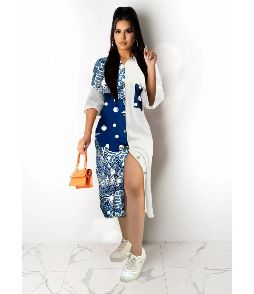 Casual Short-Sleeved Single-Breasted Solid Color V-Neck Long Dress Wholesale Dresses V5923050300060